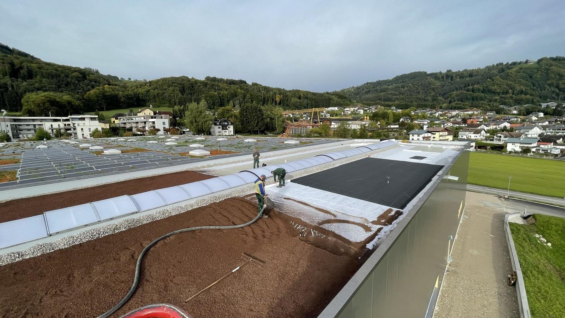 Foliendacheindeckung mit extensiver Begrünung